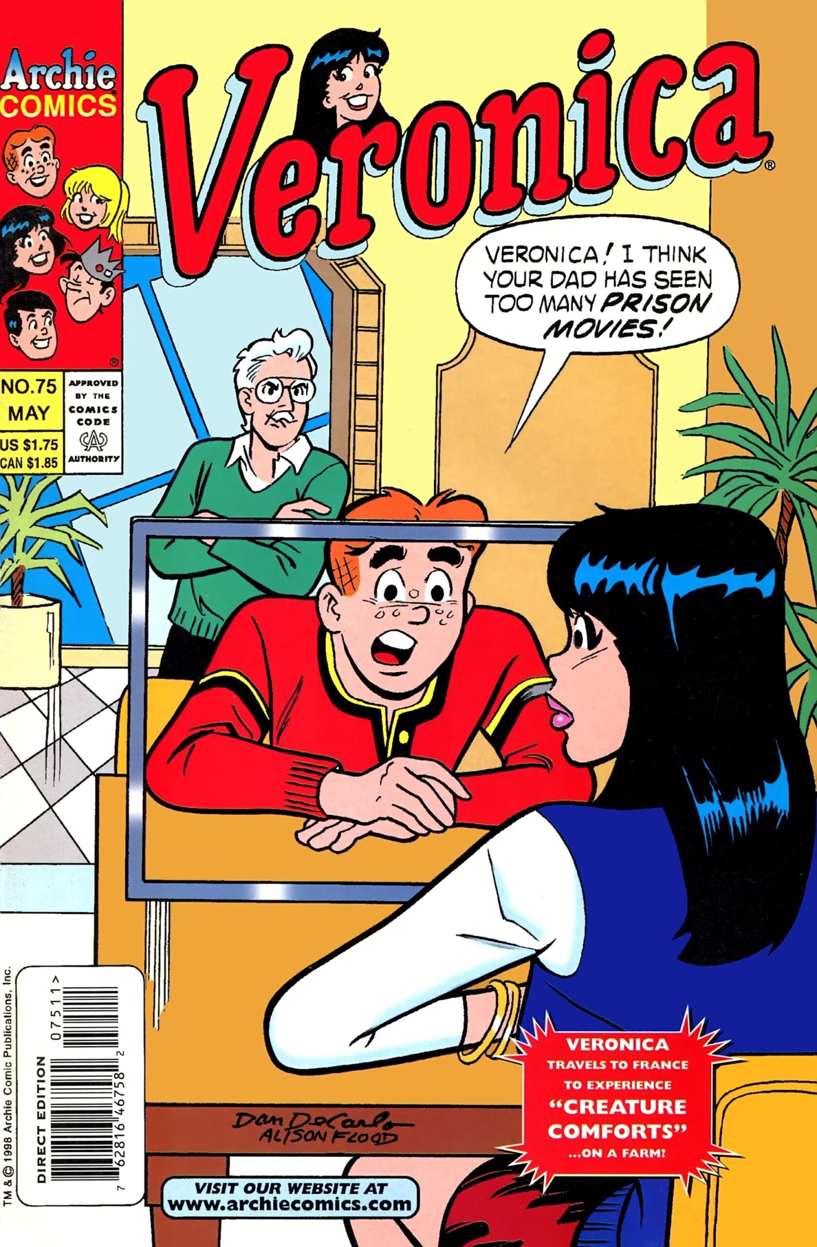 Cover pencils by Dan DeCarlo, inks by Alison Flood. “Creature Comforts,” script by Barbara Slate, pencils by Jeff Shultz, inks by Rich Koslowski; A business partner of Mr. Lodge’s invites Veronica to come visit his daughter on their farm in France. “Gowns of Renown,” script by George Gladir, art by Jeff Shultz; Veronica auctions off her expensive gowns for pennies on the dollar for charity. “Hear Here,” script by Jeff Smith, pencils by Stan Goldberg, inks by Rich Koslowski; Veronica call to wish her father a Happy Birthday. “The Creative Block.” 36 pgs., full color.